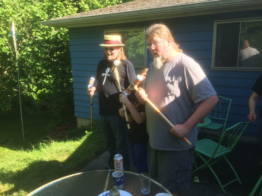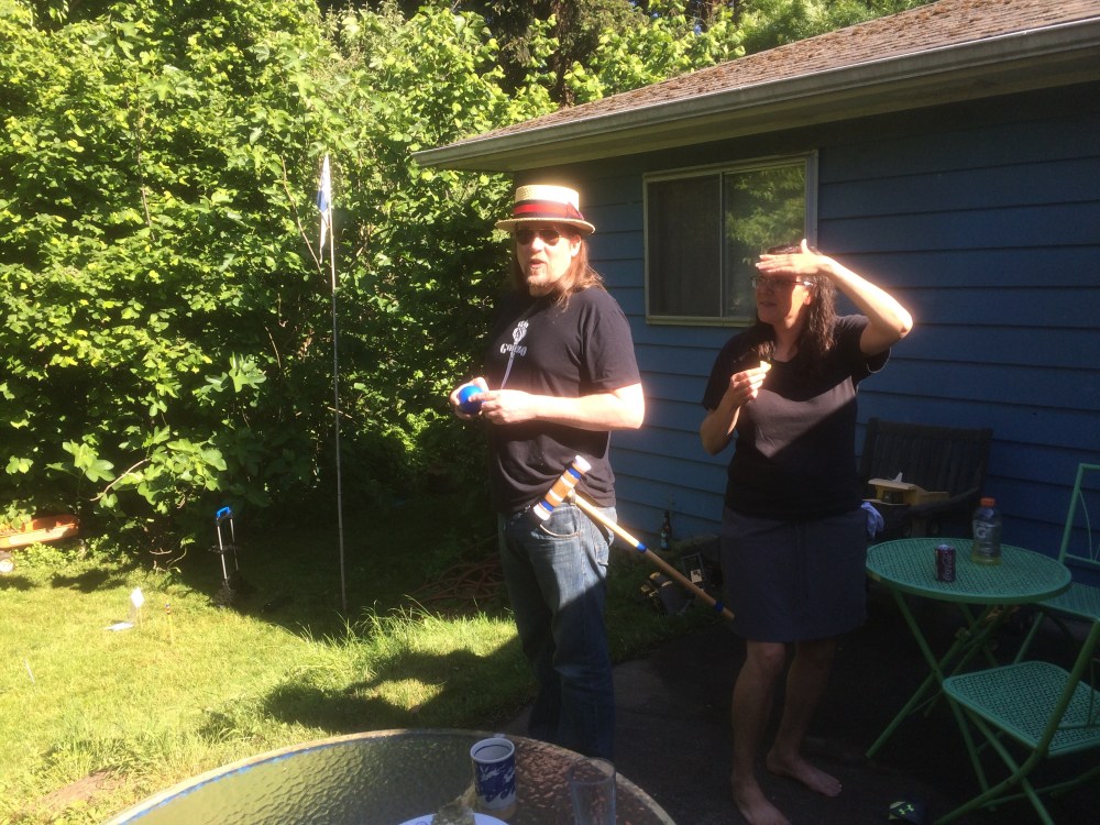 You may think these people don’t look all that old. But that probably says something about you. Still, I didn’t get any good pictures of the even older people. For example Sam’s Big Grandpa was present and he is 90! Croquet was involved, and Tofu and I-had a great time watching the game while eating hot dogs. We stayed the night and this morning I got to deliver Sam to school. Then I got to spend some quality time with Jeremiah and Nan before heading to Corvallis.