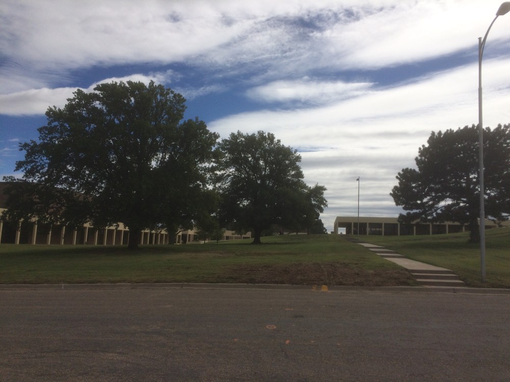 Hardly anyone was on campus. There were some big guys wandering toward the gym. They didn’t understand my questions about their school… private or public? Where’s the Administration building? I found a couple food service workers taking a smoke break behind the dining hall. They said it is a community college and they offer programs in cosmetology and auto mechanics. They said they didn’t know how big the school was but they had 287 students that were paying for meals. Other than these vital pieces of information, Tofu and I figured out the have a football team and they are called the Bulldogs. Tofu had a productive walk. The grass was great!