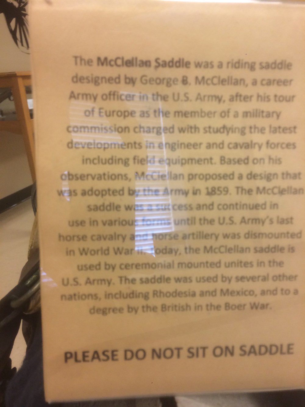 My Dad had a McClellan saddle, but I don’t know how he got it. I rode it a few times, pretending it was an English saddle as all I’d ever ridden on were western saddles, but the buckles holding the stirrups always pinched my legs. I didn’t envy the horsemen who had to ride this saddle.