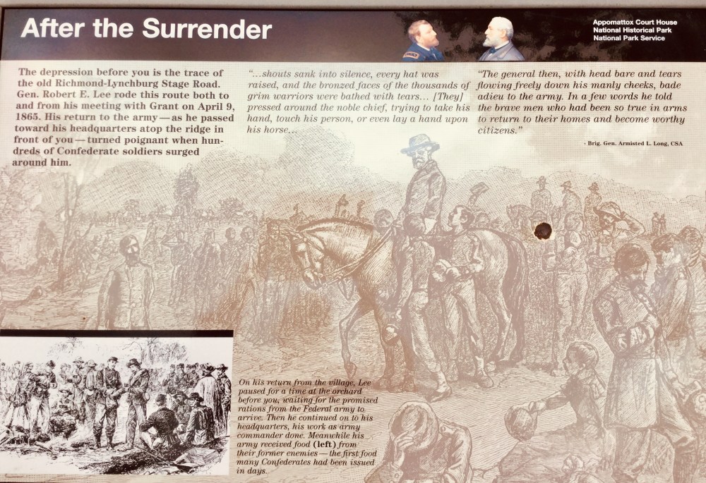 After negotiations were completed Lee got on his horse, Traveler, and rode toward his Army.