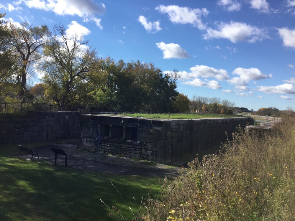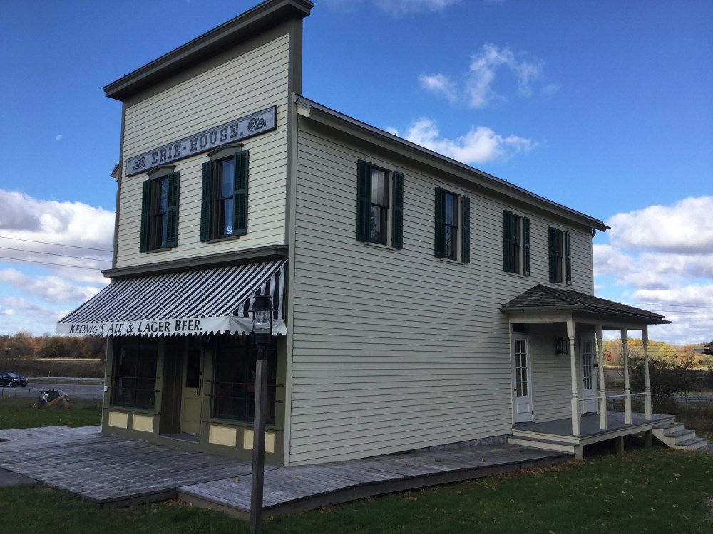 Tofu and I started down the turnpike heading east toward Oriskany (Ore-ISS-kahknee) New York. The turnpike is sometimes called the Eire Canal Highway. As we drove through the mostly flat land, I wondered if we would have an opportunity to encounter the Canal. The turnpike is very much a limited access highway. I learned today that 70 years ago when the turnpike was built, people were told that it would be paid for by 1961, and the tolls to travel would be lifted. It cost me $8.35 to travel from Buffalo to Oriskany. In the middle of our trip, lo and behold, there appeared a Visitor Center about the Erie Canal. It just opened last May and is the only monument available on the entire turnpike.
