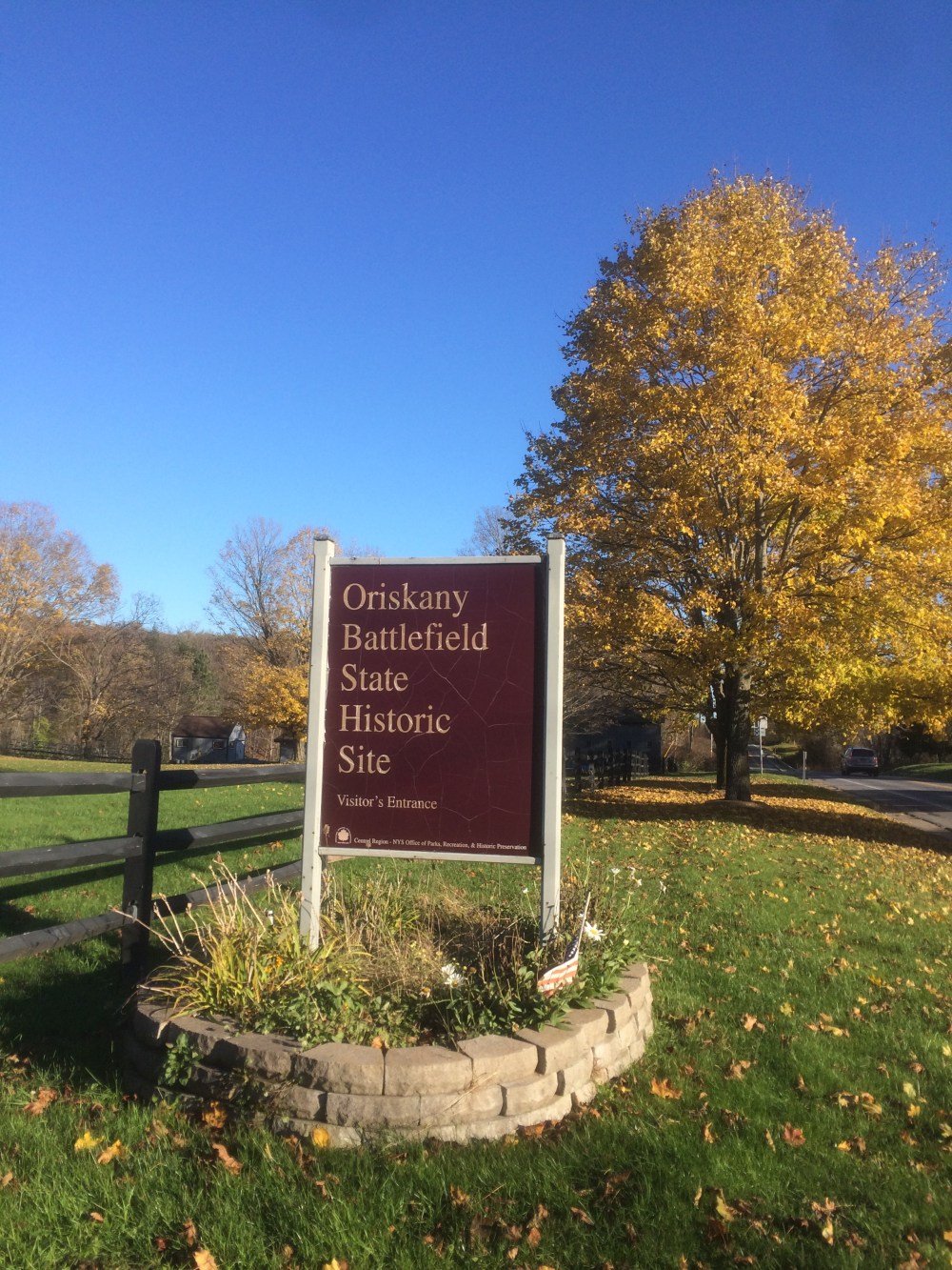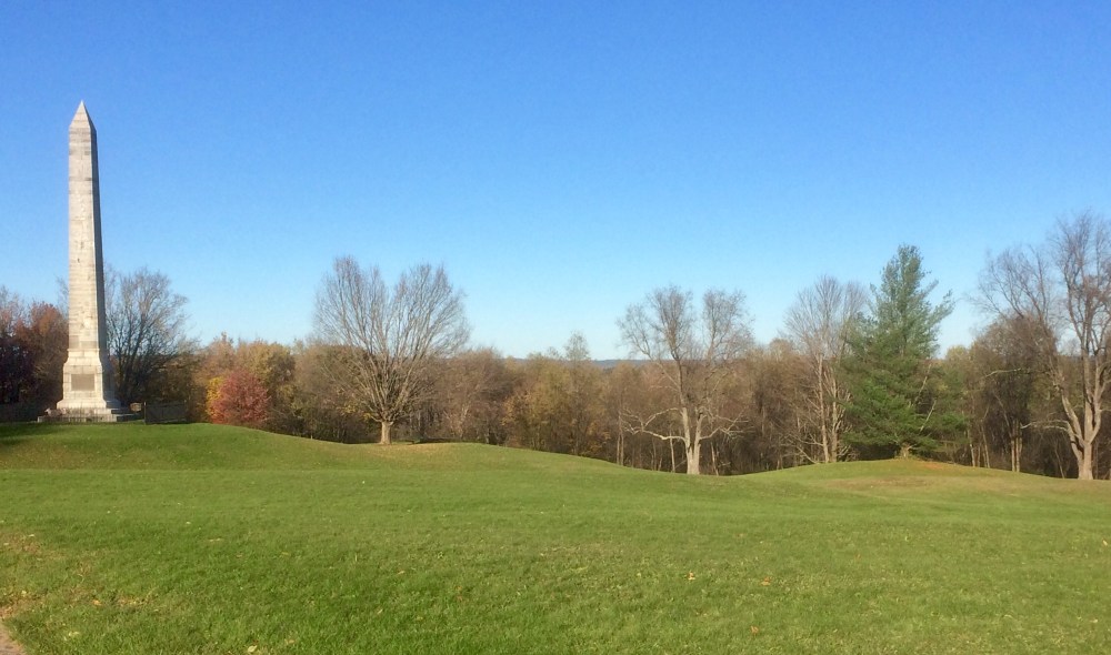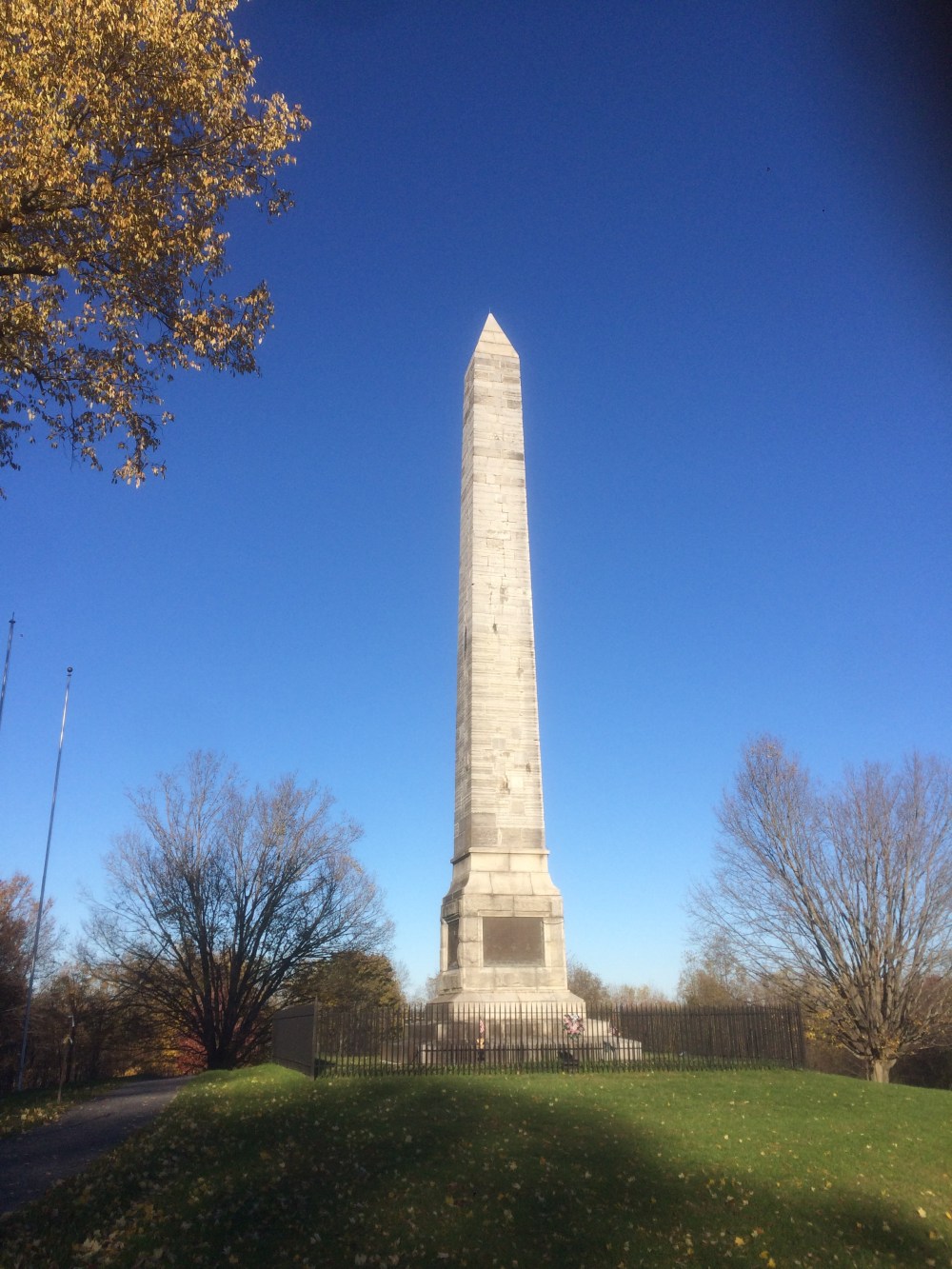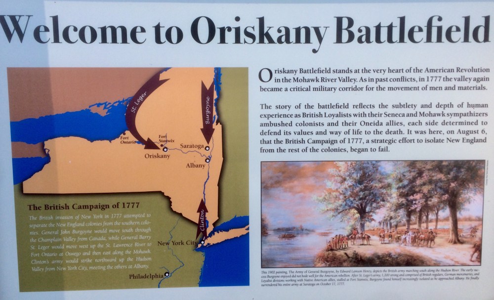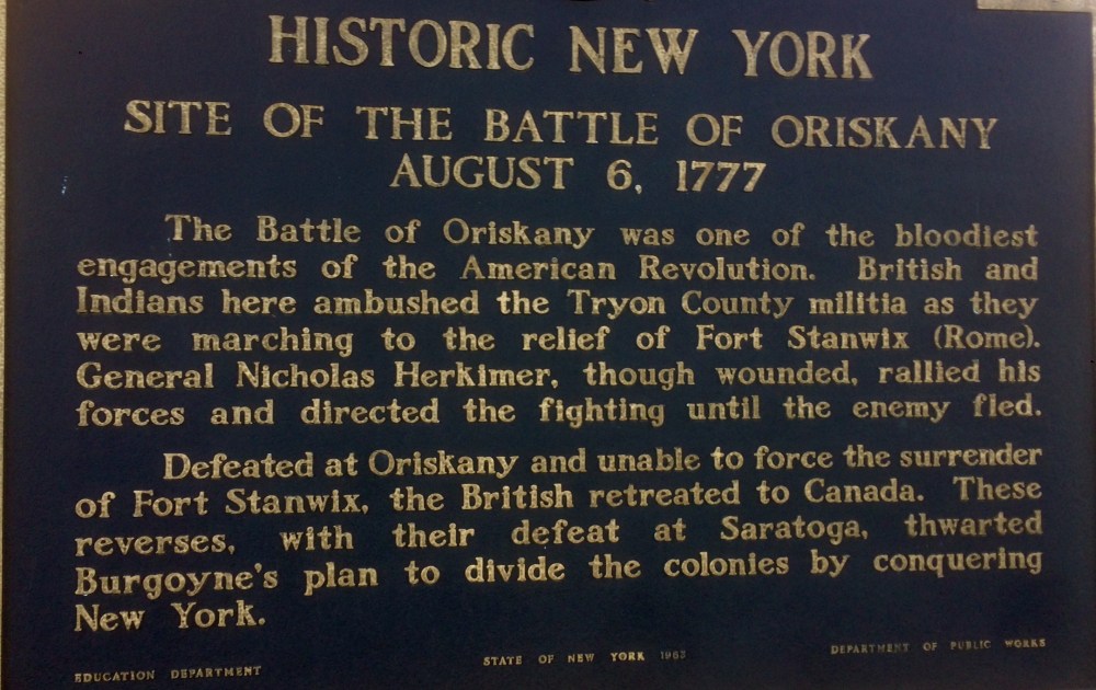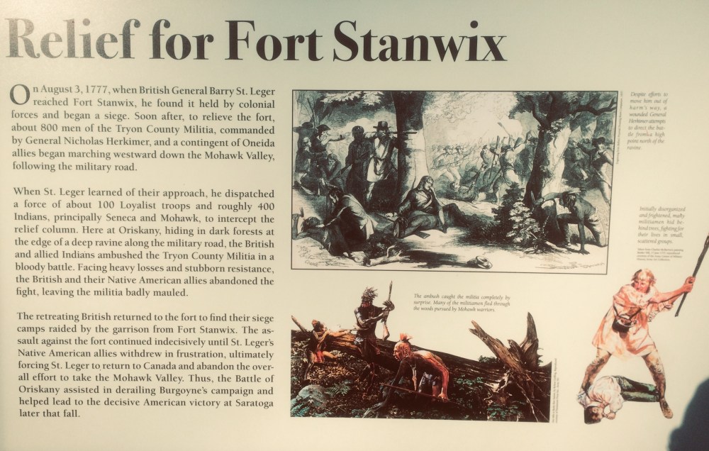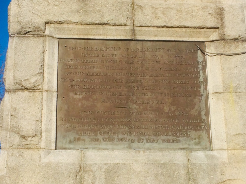 Next to these two houses was a tiny pizza shop, with a mob guy in witness protection running it. He’s the one who helped me with pronouncing Ore-ISS-kah-knee. He also told me the village predates both the Erie Canal and the revolutionary war. In fact, the Battle of Oriskany is one of the most important battles of the revolutionary war. He said to me, “Go 3 miles up the road and there’s a monument.” So after getting my sub sandwich, we went to the Revolutionary war.